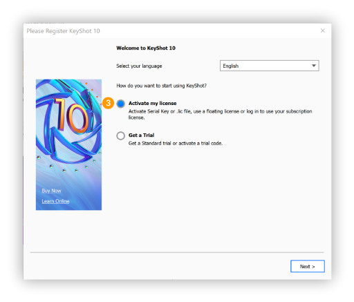1. Downloaden und installieren Sie die KeyShot Pro floating Anwendung. Um KeyShot zu downloaden klicken Sie hier.