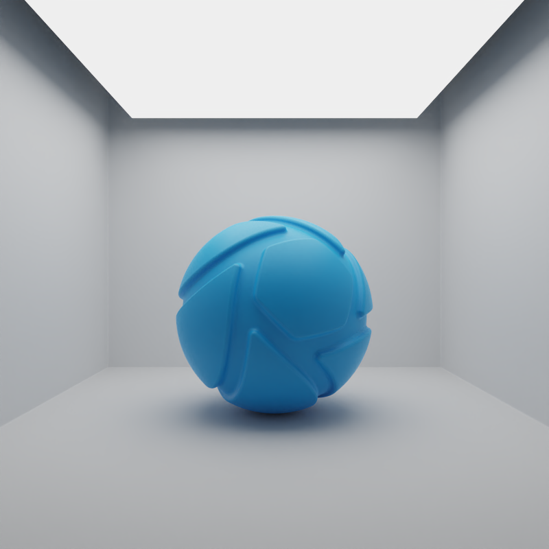 Das folgende Beispiel zeigt die Auswirkung des Umschaltens der Sichtbarkeit in Schatten. Die Szene wird durch ein großes Planarlicht mit kalter Farbe, einer Gobo-Textur und einem Spreizwinkel von 0,2° beleuchtet. Direkt darunter befindet sich ein etwas kleineres Planarlicht mit warmer Farbe und 90° Spreizwinkel. Sichtbar im Schatten wird für das kleinere, warme Planarlicht umgeschaltet.