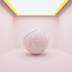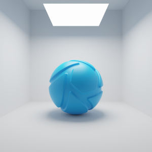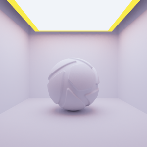 The examples below show the effect of toggling visibility in shadows. The scene is lit by a large area light with a warm color (HSV: 30°, 90%, 100%) and a slightly smaller area light with a cool color (HSV: 225°, 35%, 100%) directly below it. Visible in Shadows is toggled for the smaller, cool area light.