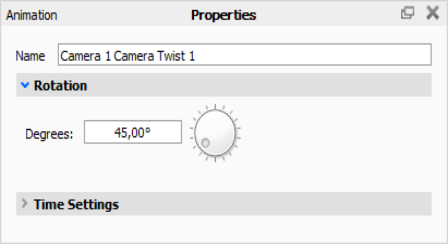 The camera Twist animation allows you to animate the Twist property of the camera.