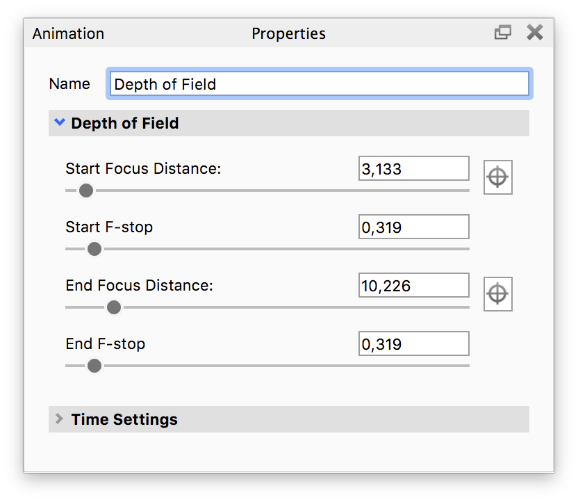 The camera Depth of Field animation animates your camera’s focus point. Before you can add this type of animation to a camera, you need to enable Depth of Field under the camera’s settings.