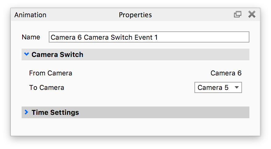 The camera animations will be represented blue node on the timeline and switch events with a blue dot.