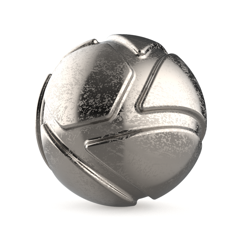 The example shows a model with a polished metal material onto which a roughness texture will be applied to achieve micro-imperfections on the surface. The third image shows the effect of directly applying above texture to the Roughness parameter of the metal material.