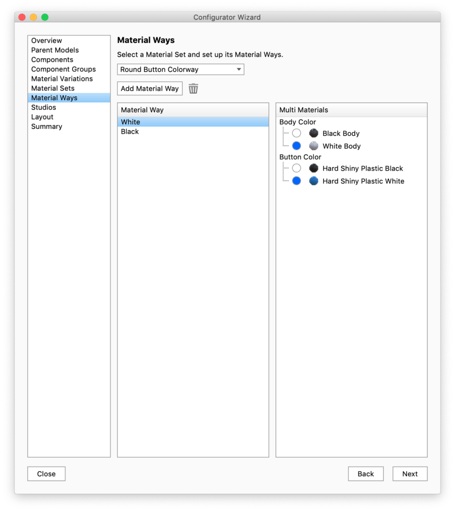 Make sure to give each Material Way a useful name, as they will be used in presentation mode/KeyShot Viewer.