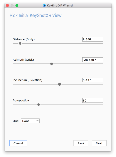 Next, you will be able to select the center of rotation for your KeyShotXR. After selecting a center of rotation, click Next.