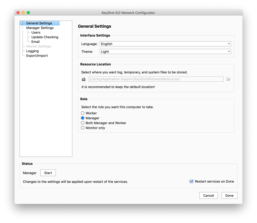 If you want your computer to serve as Manager on your network you select the Manager Role (or Both Manager and Worker if you also want it to contribute to the rendering force) in the Network Configurator