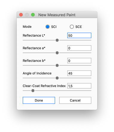 The option will open a dialog where you can enter the measured values of the material, which then will be converted to a regular Paint material node.
