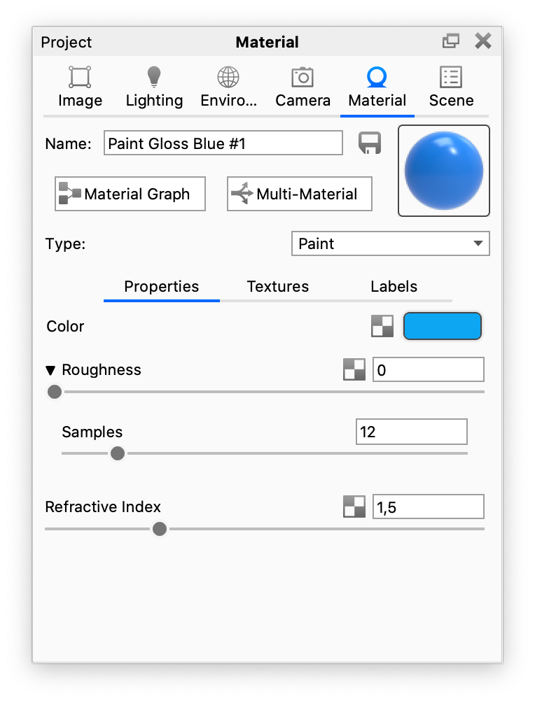 If you need to match a specific paint you can enter the measured values via the Material Graph as described below.