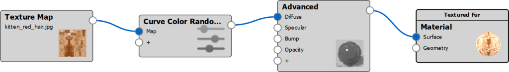 Add color randomness to geometry that is assigned a solid color, texture map, or procedural texture. This node allows to randomize hue, saturation and value on a per-curve basis. This can be useful to create additional detail and variation in otherwise homogeneously colored curves.