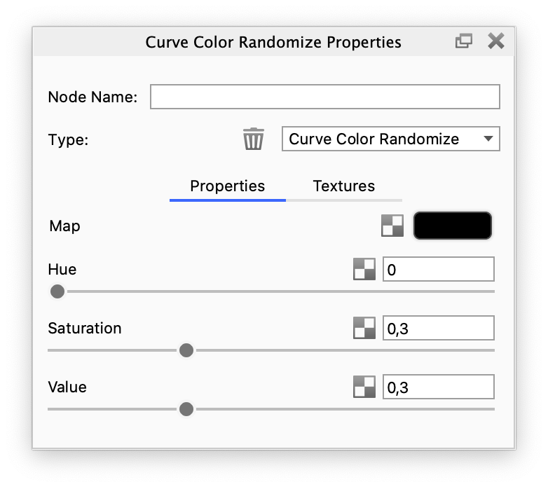 The default settings of the Random Color node allow to add subtle saturation and value variation to curves.
