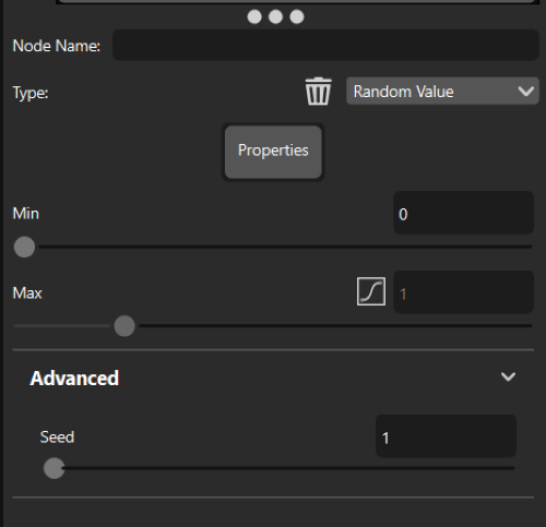 The Random Value node allows you to randomize most inputs in the Material Graph. You can set a range between a minimum and a maximum value, this will assign each part a random value within that range.