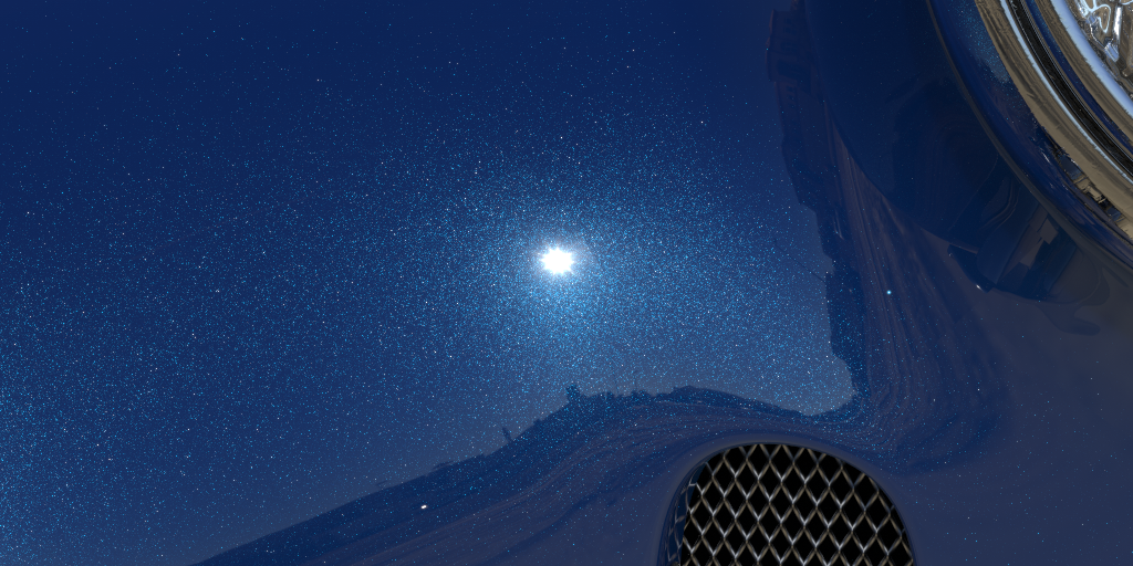 Der Schieberegler kontrolliert die Größe der individuellen Flocken, diese werden in Millimetern angegeben. Bei einem echten Lack läge die Größe der Flocken zum Beispiel zwischen 0.02-0.5 mm. Die Flocken werden zufällig im Material verteilt, einige von ihnen erscheinen dabei heller als andere, da die Farbe der Flocken zwischen der verwendeten Lack-Farbe und weiß variiert.