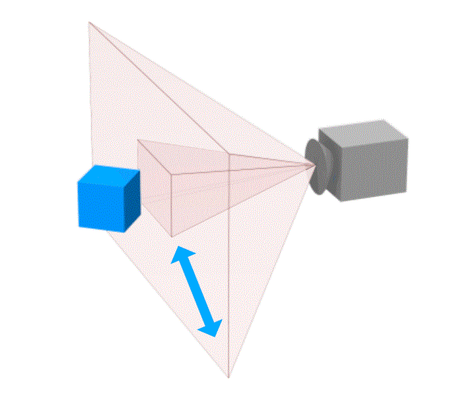 Der Kamera-Zoom ändert die Brennweite der Kamera. Wenn Ihre Kamera auf Perspektive eingestellt ist, steuert die Brennweite auch das Ausmaß der Verzerrung (Konvergenz), die in der Echtzeitansicht angezeigt wird. Weitere Informationen zur Brennweite finden Sie im Abschnitt Kamera, Perspektive.