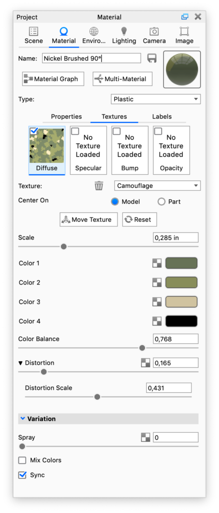 Verwenden Sie die prozedurale Textur Tarnanstrich zur Simulation von Tarnstrukturen, wie sie auch in der Realität zur Anwendung kommen.