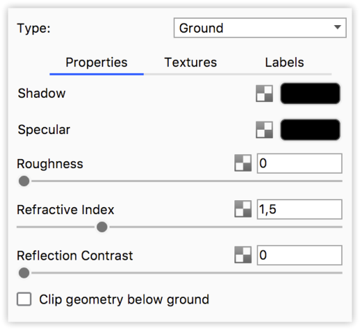Geometrie unter Boden kappenWenn irgendwelche Geometrie unterhalb des Grundebenenmaterials dargestellt wird, schneidet diese Option die Geometrie unterhalb der Grundebene ab und verbirgt sie so vor der Kamera.