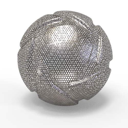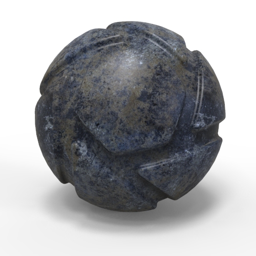 SpiegelndDer Spiegelnd-Map-Typ kann Schwarz- und Weiß-Werte nutzen, um Bereiche mit sich ändernder Spiegelungsintensität zu kennzeichnen. Schwarz kennzeichnet Bereiche mit einem Spiegelungs-Reflexionsvermögen von 0%, während Weiß Bereiche mit einem Spiegelungs-Reflexionsvermögen von 100% kennzeichnet. Beachten Sie, dass im Beispielbild das Material zwar gerichtete (spiegelnde) Reflexionen reflektiert, die Punkte jedoch nicht. |