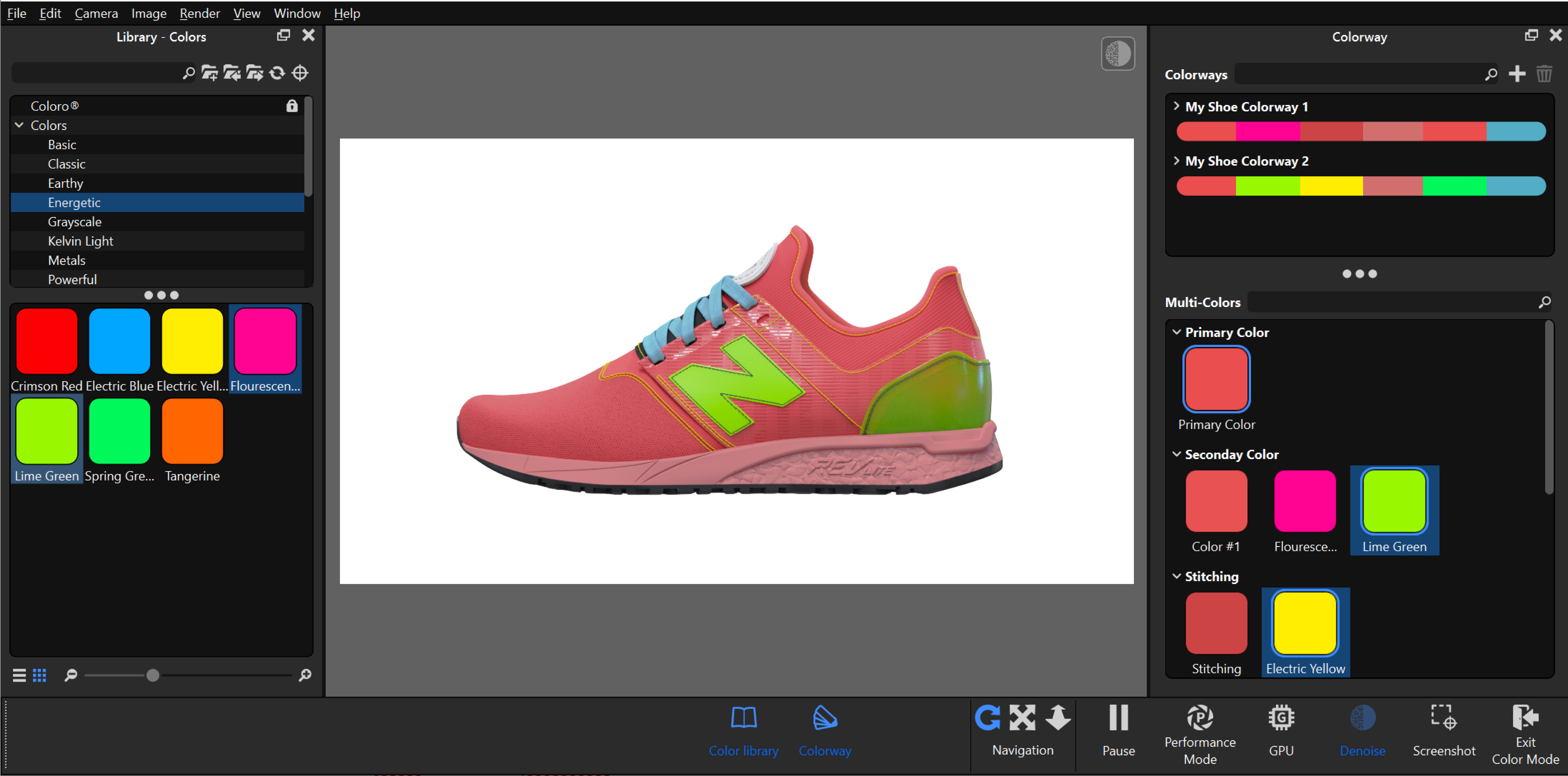 Colorways can also be accessed outside of Color Mode from the Ribbon in KeyShot Studio. You can also add Colorways to Studios.