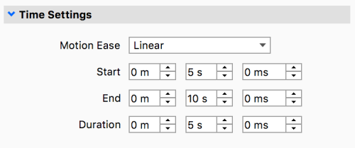 Common for the animation types (except Curve Fade animations*) are the Time Settings, where you can control the timing and duration of your animation.