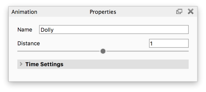Control your Dolly distance. The Distance slider is calibrated to your Scene Units.Control your orbit span in degrees.