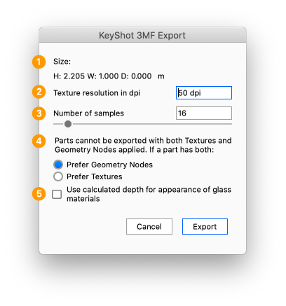 - Information about the size of the exported geometry. This will be updated if you change the Model Scale or the Export Units.