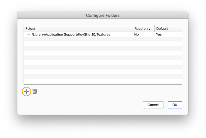 The folders tab allows you to specify folders or shared folders for following KeyShot Studio Resources: