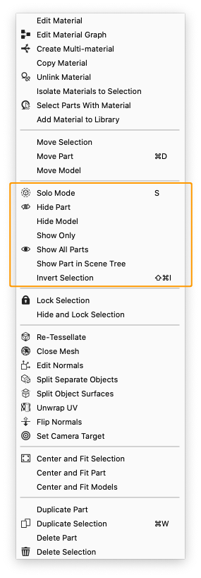 - Solo Mode, which enables you to isolate the selected geometry temporarily.