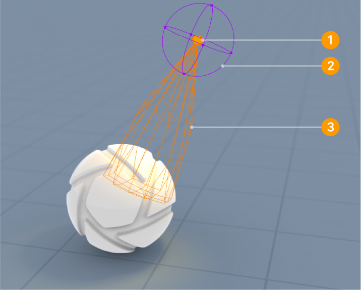 - The orange wireframe represents the shape of the light distribution in the IES light.