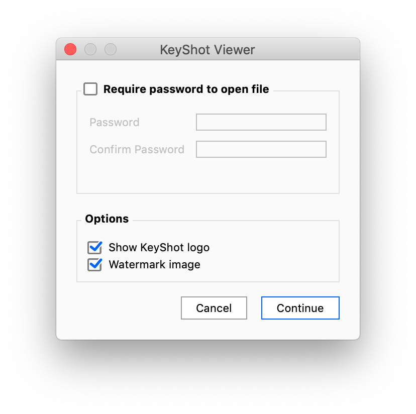 Depending on how the scene was saved from KeyShot Pro, you may be prompted to enter a password.