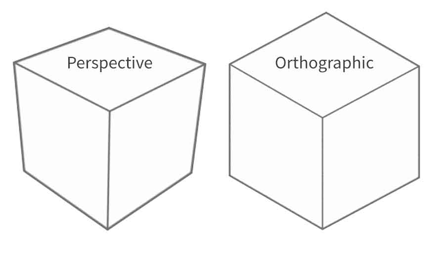 An Orthographic lens uses parallel projection to view the scene: all lines parallel to each other appear parallel regardless of camera distance or position. An orthographic lens is most commonly found in CAD modelers and is not affected by perspective distortion, foreshortening, or parallax. This means that relative distance in the realtime view is always accurate for any parallel or perpendicular lines.