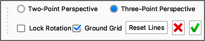 When clicking on the Match Perspective button, A widget appears in the Real-Time View and you will also notice 2 or 3 sets of vanishing lines in different colors – The lines and colors correspond to the scene’s coordinate system. X is blue, Z is red, and Y is green.