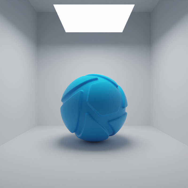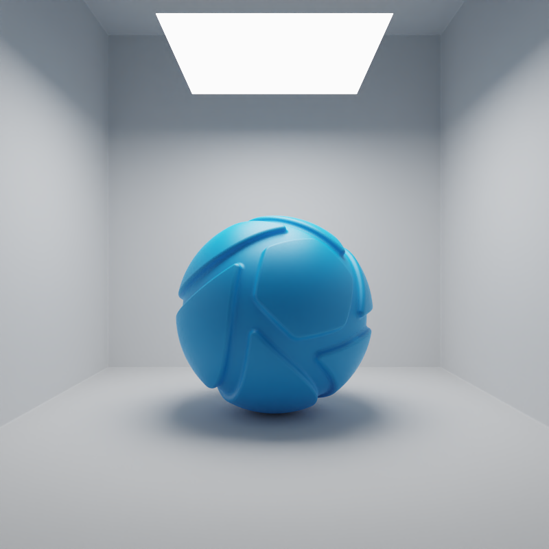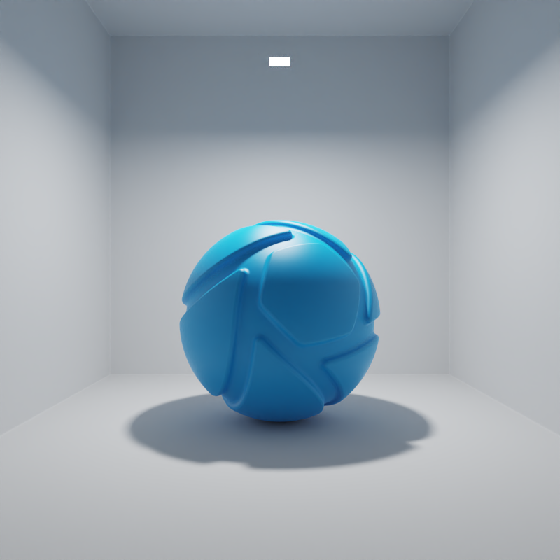 The examples below show the effect of increasing the size of a square planar light from 10 to 200 mm. Power is a constant 25000 Lux.