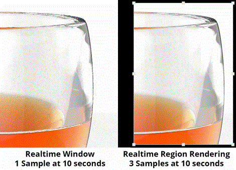 The smaller the region (and less complicated the materials and lighting), the faster the render will resolve. Both types of region rendering are set up in the same way. When region rendering is enabled you can control the region area size and position in two ways: