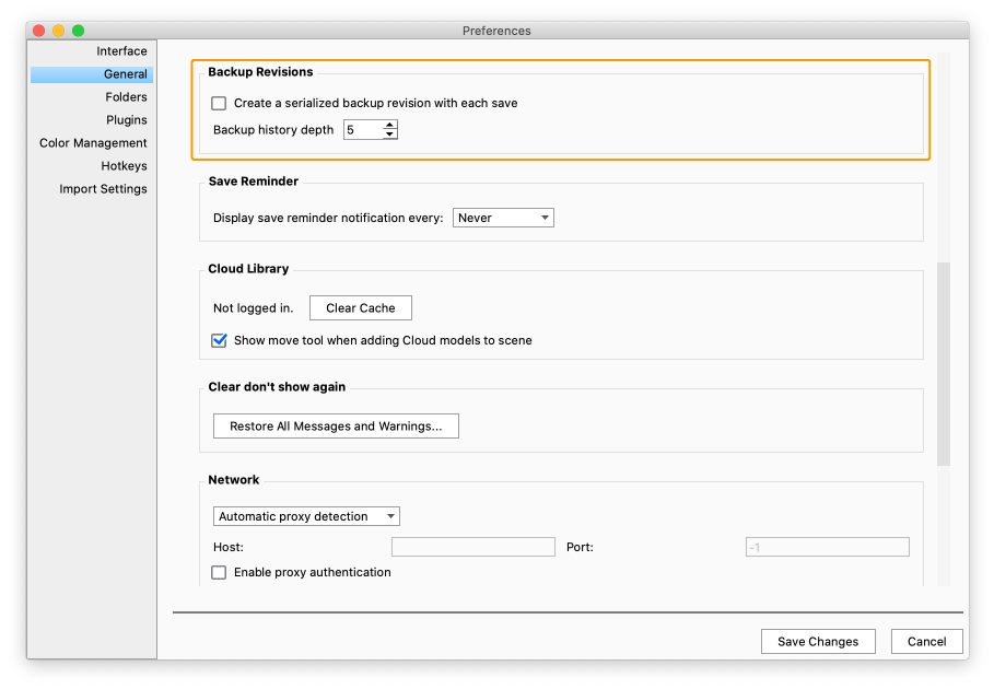 - Mac: KeyShot Studio > Preferences > General > Backup Revisions